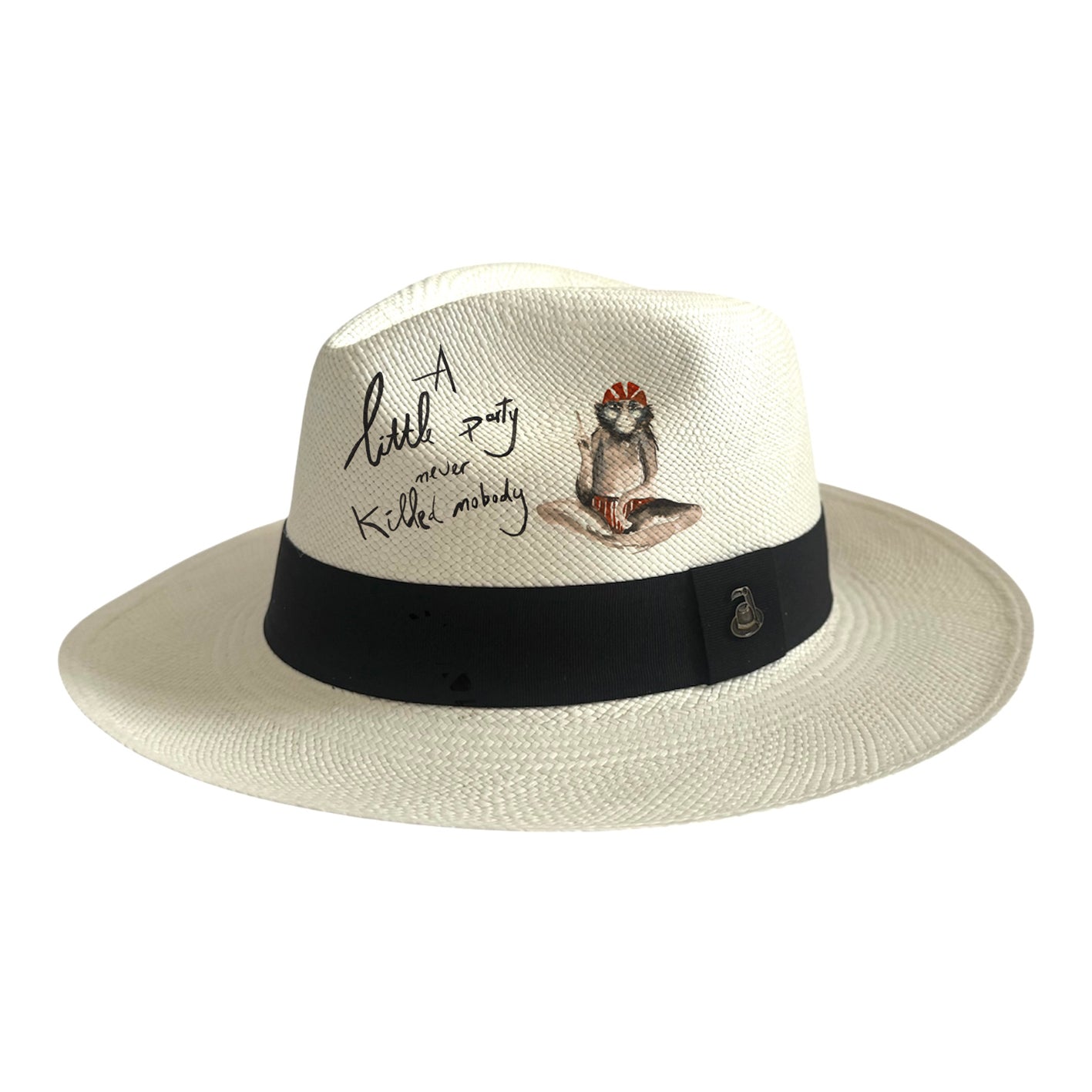 • Each hand-painted hat is unique and one-of-a-kind.  There is also the option to commission a painting on your hat as well as purchase it perfectly plain.  Each hat has the VV initial embroidered on the top of the hat and the 'Victoria Verbaan and the smoking daxi' label sewn onto the inside band.